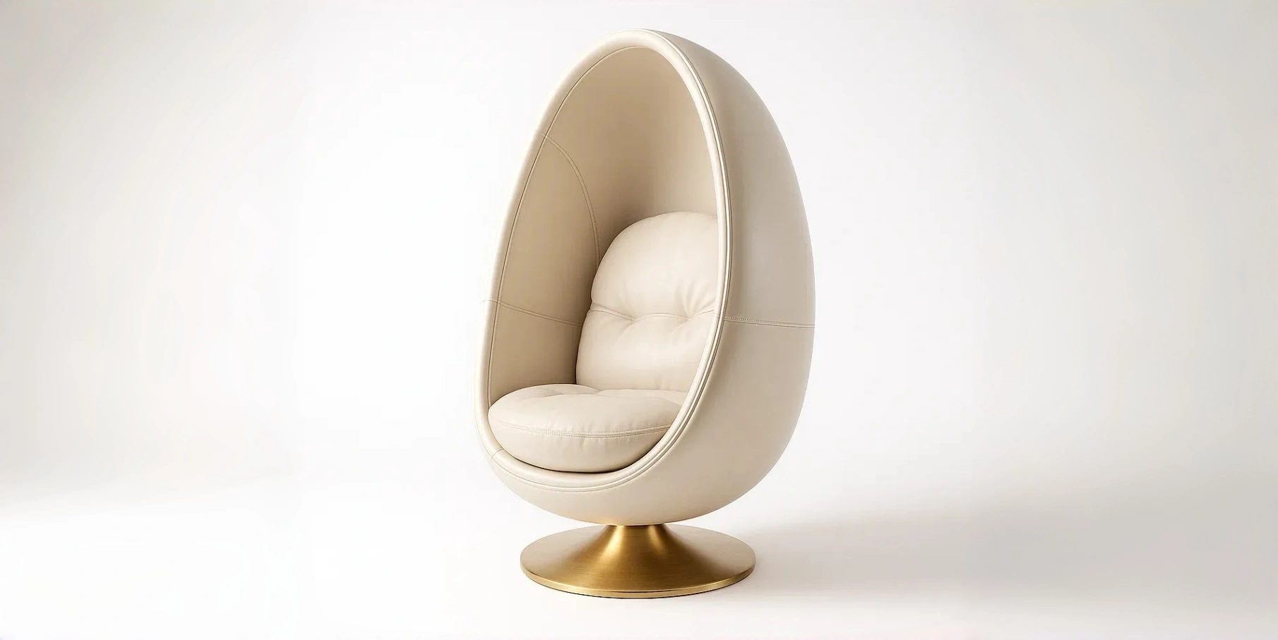 Chaise de détente Pod en cuir PU beige avec base en métal doré