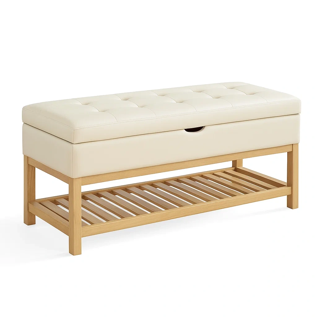 Banc de rangement Banc en Bois avec Siège en PU Crème€64,60