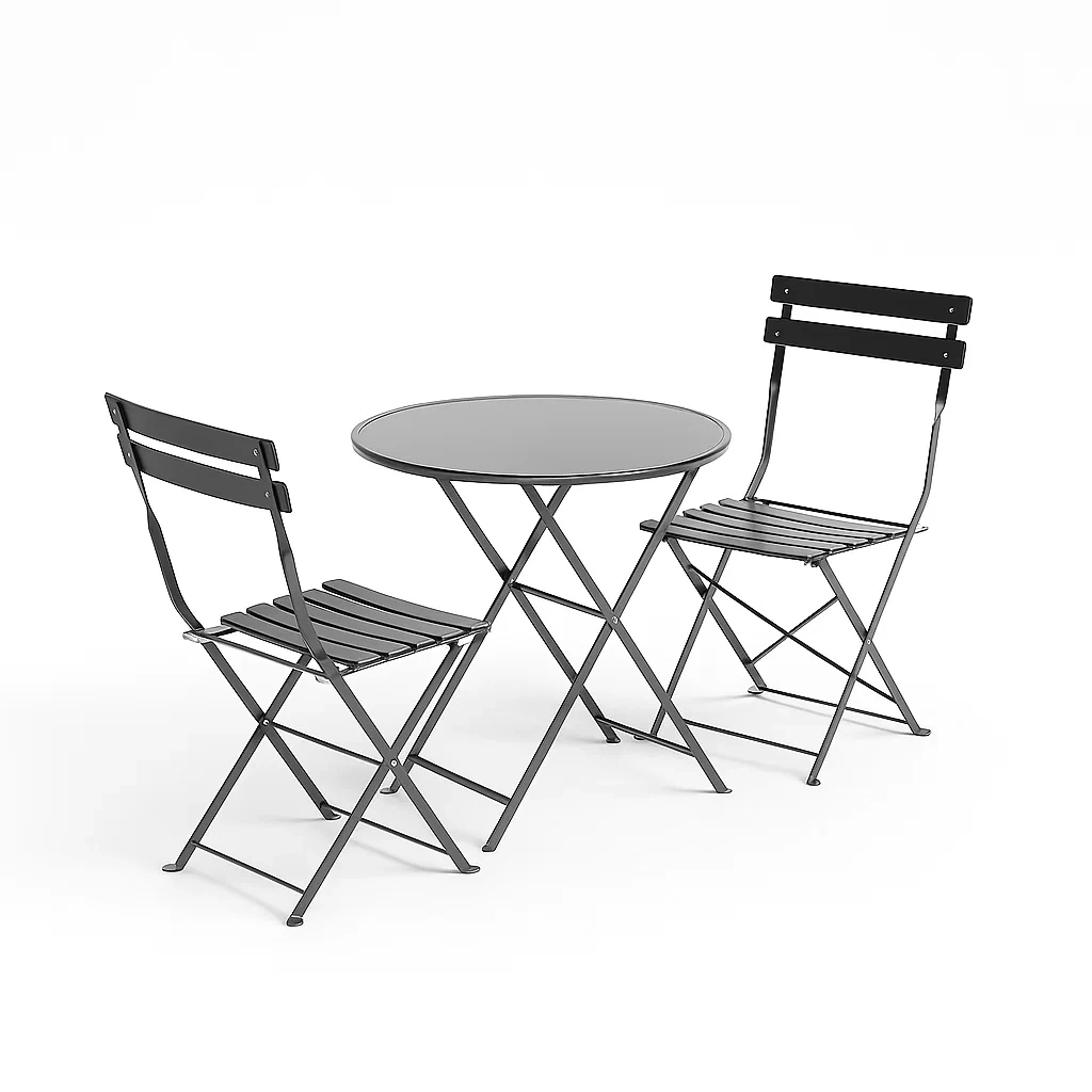 Ensemble bistro Ensemble Table Pliante Ronde et 2 Chaises en Métal Noir€64,60