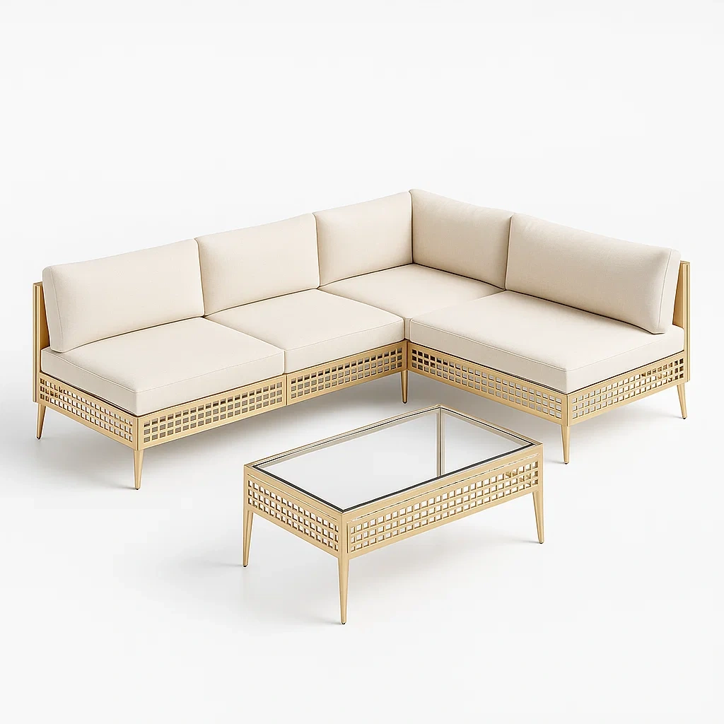 Ensemble de salon Ensemble Canapé d'Angle et Table Basse Tissu Beige Métal Doré
