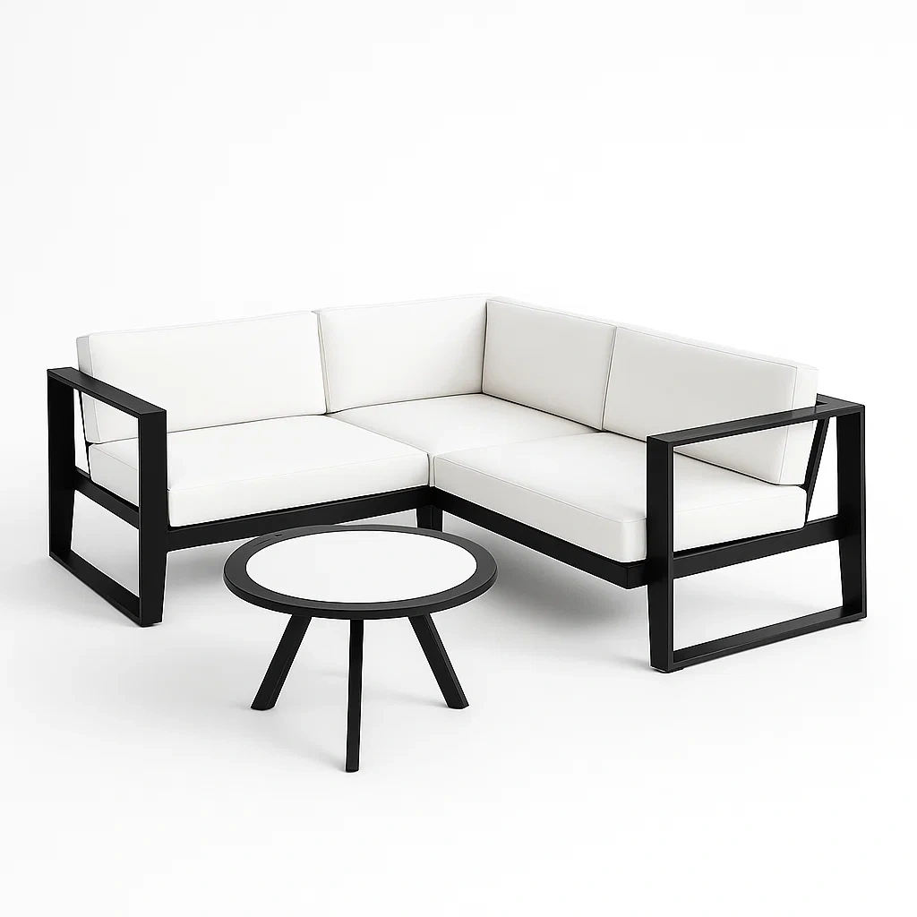 Ensemble de salon Ensemble de Salon d'Extérieur en Aluminium avec Coussins en Polyester et Table Basse en Verre Trempé