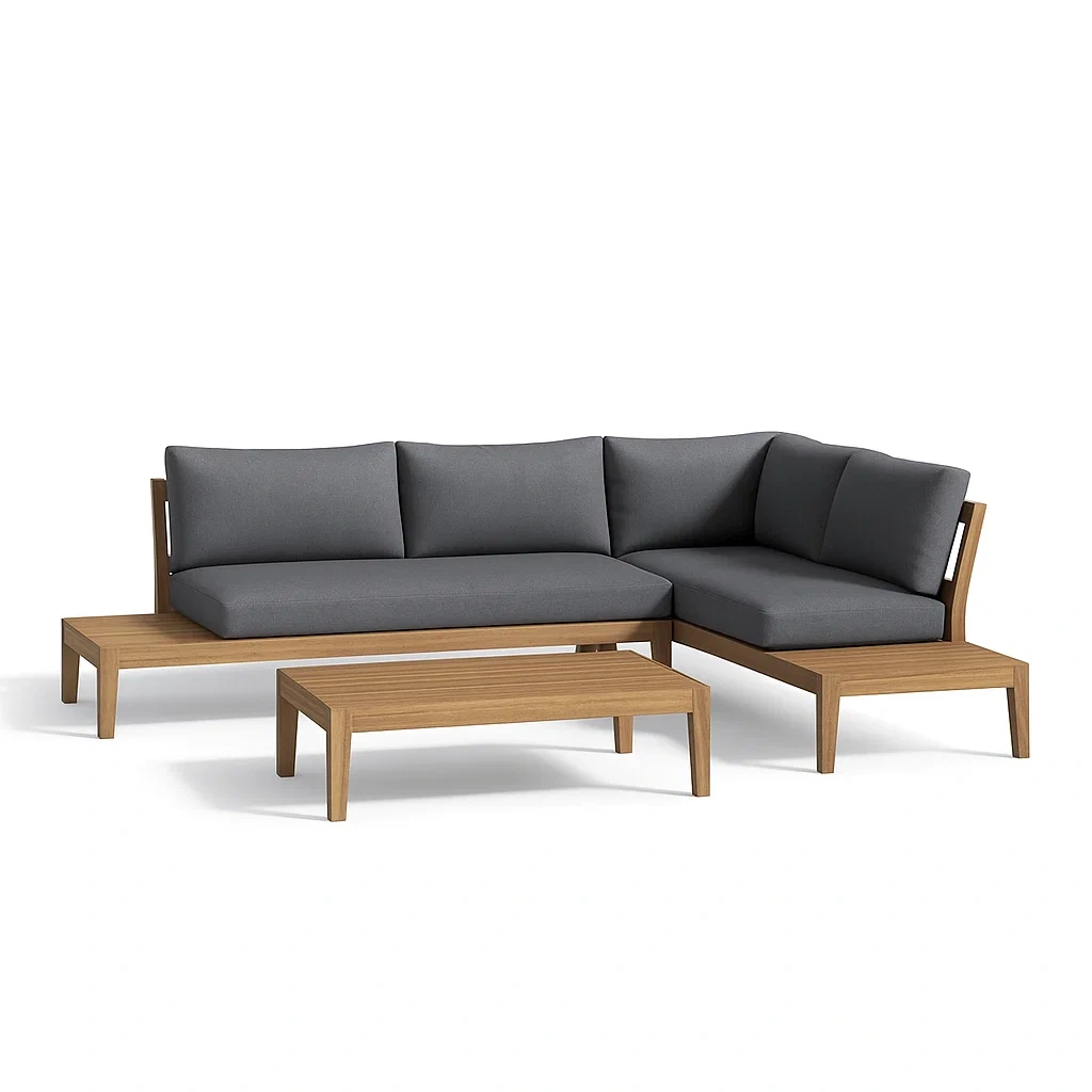 Ensemble de salon Ensemble de Salon de Jardin Angle en Bois et Tissu Gris Foncé