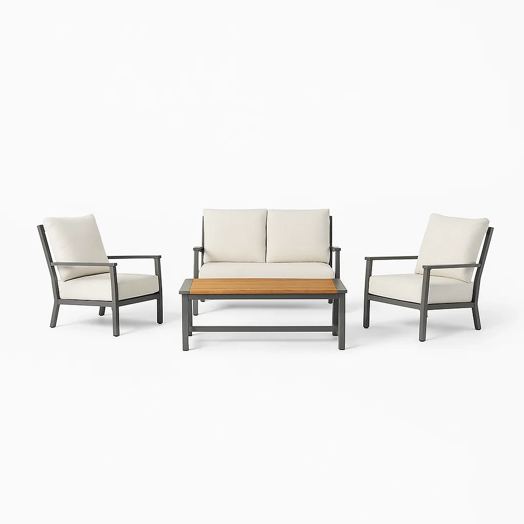 Ensemble de salon Ensemble Mobilier de Jardin en Aluminium Coussins en Polyester Écru, Canapés et Chaises