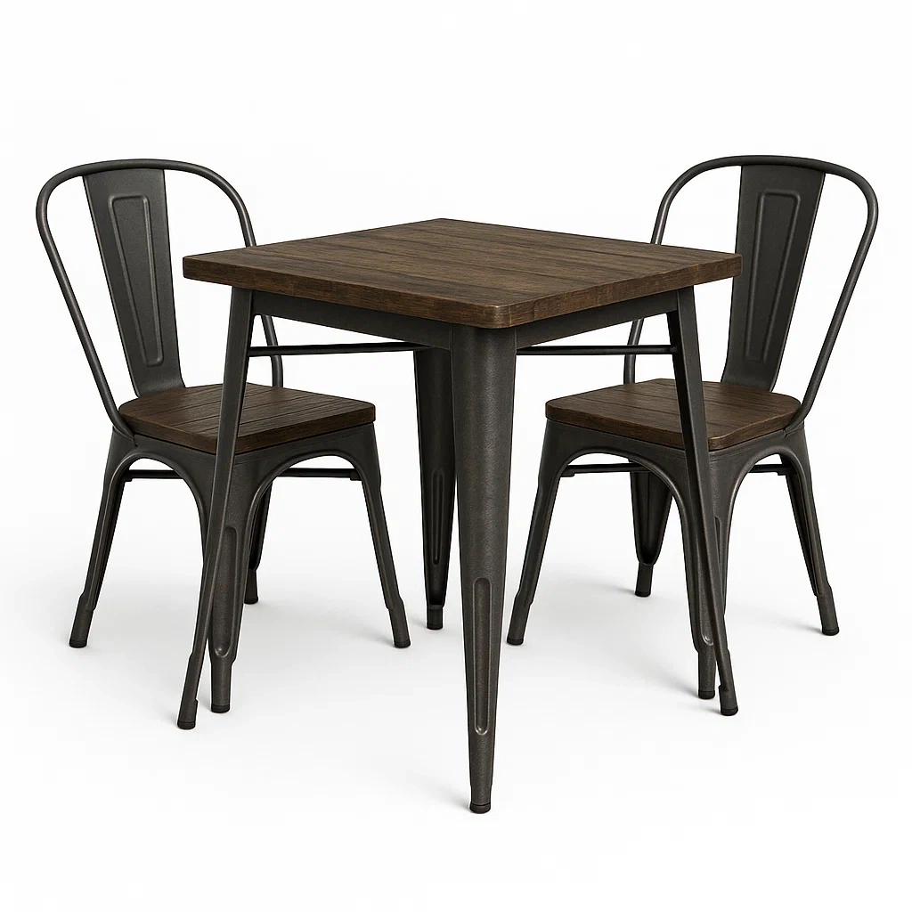 Ensemble table et chaises compact Table Carrée et Chaises en Bois et Métal Noir et Marron