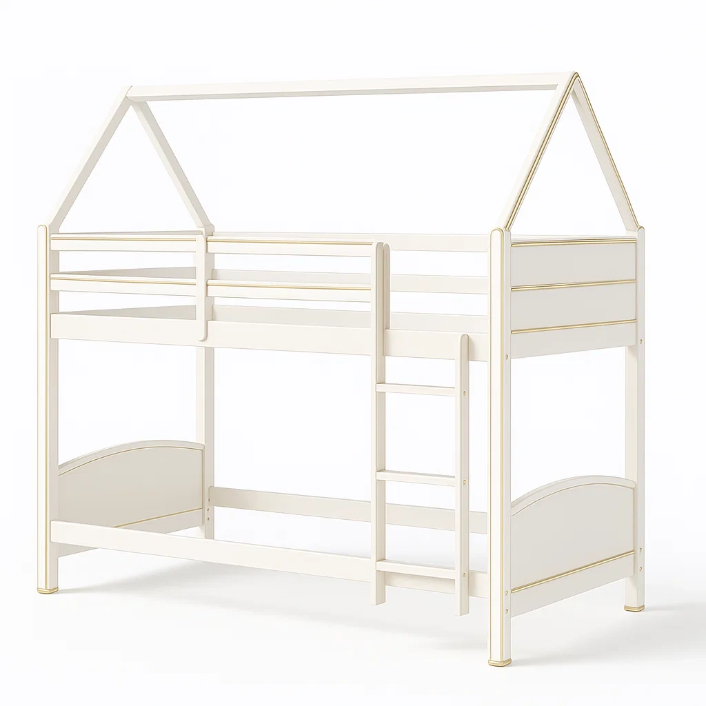 Lit superposé Lit Mezzanine en Bois de Pin Blanc avec Toit et Échelle 198x97x145 cm