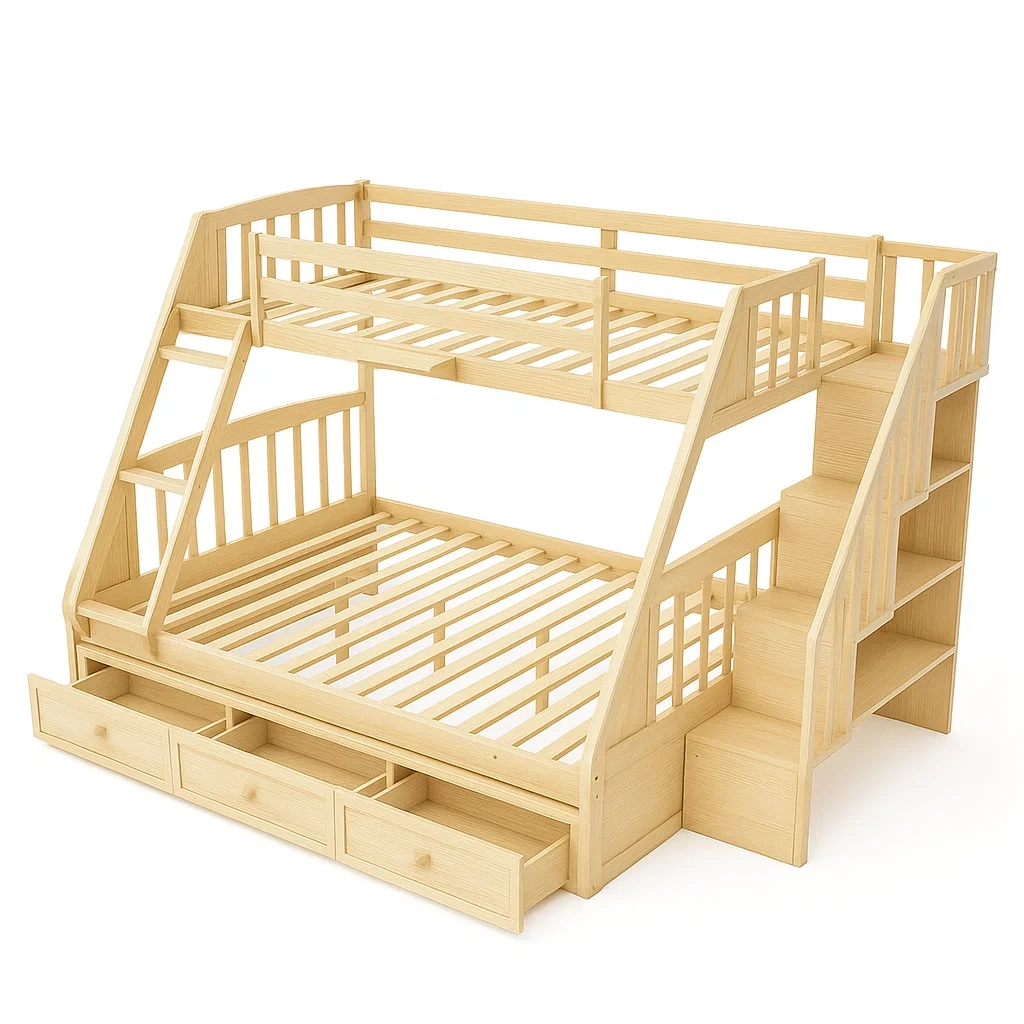 Lit superposé Lit Superposé en Bois de Pin avec Échelle et Tiroirs 210x155x165 cm