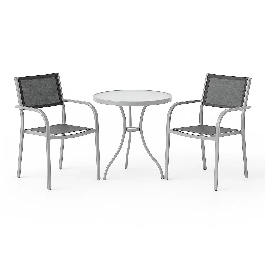 Petit ensemble de jardin 3 pièces en aluminium et verre