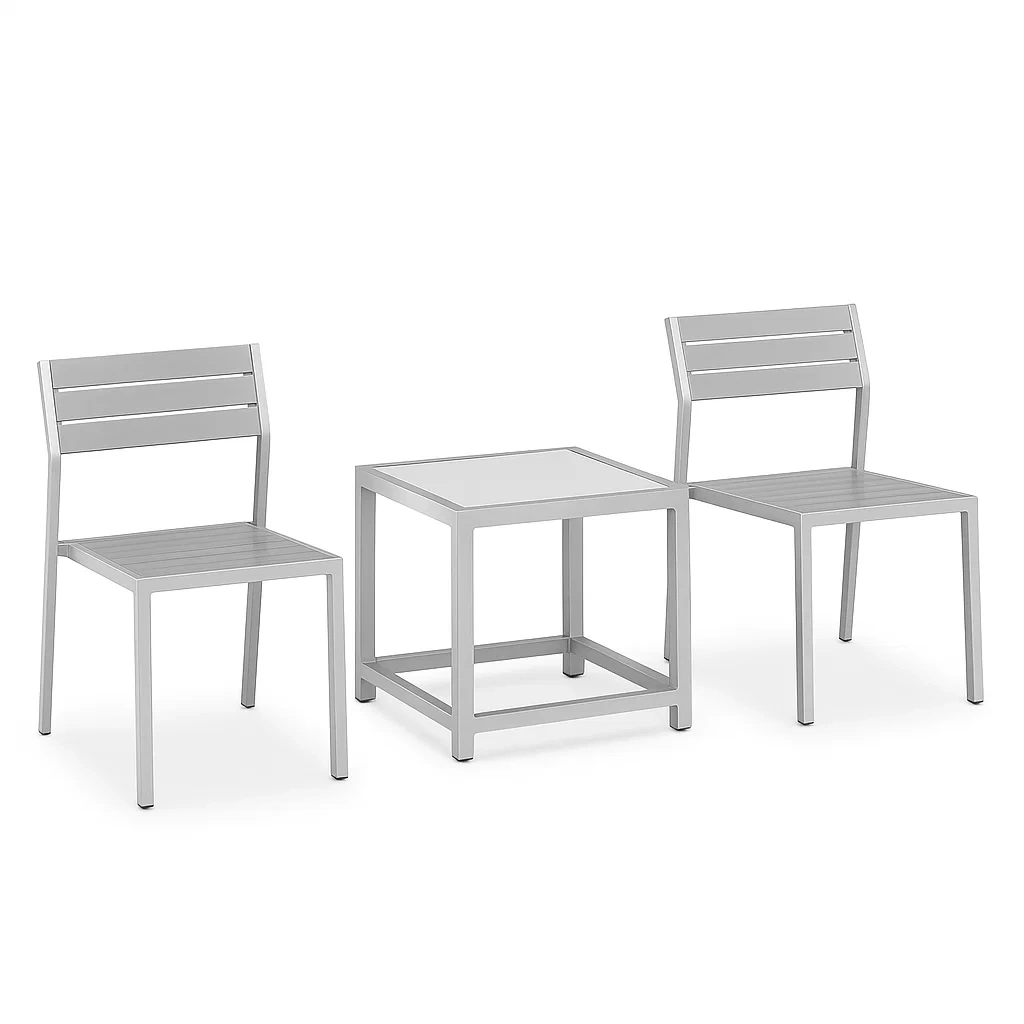 Petit ensemble Table et Chaises d’Extérieur en Aluminium et Verre Trempé Gris
