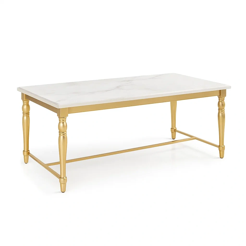 Table de salle à manger en marbre blanc avec pieds en métal doré